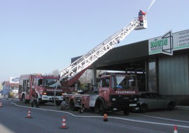 | Über die Drehleiter wird eine Riegelstellung vorgenommen. | ||