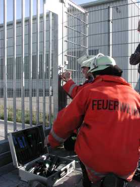 | Einsatztrupp beim Öffnen eines Tores. | ||