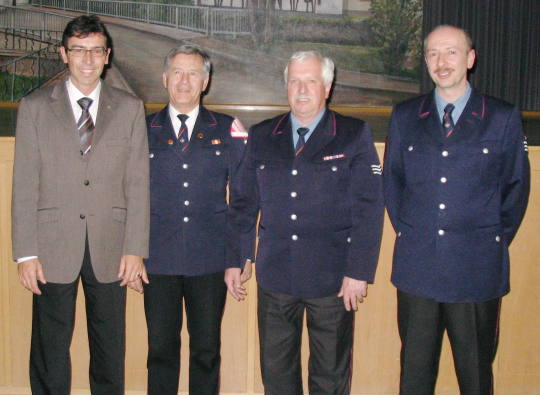 Brandmeister, Heinz Springmann zum Hauptlöschmeister, René Meier,