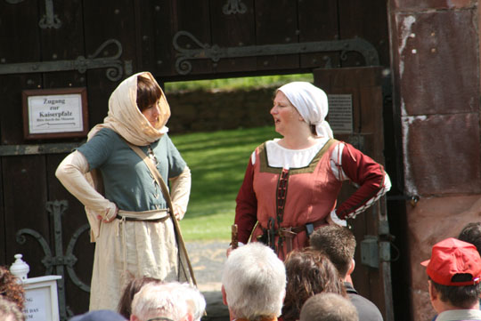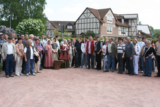 | Mit einem Tagesausflug besuchte die Feuerwehrabteilung Renchen die Stadt Gelnhausen. Dorthin bestehen zahlreiche kulturelle Kontakte, der bekannte Barockdichter und ehemaligen Renchener Schultheiß Johann Jacob Christoph von Grimmelshausen ist in Gelnhausen geboren. Nach der Begrüßung im Rathaus fand eine Stadtführung im noch heute gut erhaltenen mittelalterlichen Stadtkern statt. Die ungewöhnliche Art des Rundgangs begeisterte die Mitglieder der Einsatzabteilung und des Spielmannszugs. Basis war die Vorführung und Erzählung einer kleinen Geschichte, bei der die unterschiedlichen historischen Örtlichkeiten besucht wurden. Die vier mittelalterlich gekleideten Darsteller benutzen hierzu auch den entsprechenden damals gebräuchlichen Wortschatz. Am Nachmittag stand die Besichtigung der Gelnhausener Feuerwehr auf dem Programm. Hier wurden die fachlich interessierten Besucher ebenfalls sehr herzlich aufgenommen. Schnell stand ein interessanter Erfahrungsaustausch im Vordergrund. | ||