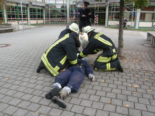 Bürgermeister Siefermann und Rektor Moll das Übungsgeschehen. In der