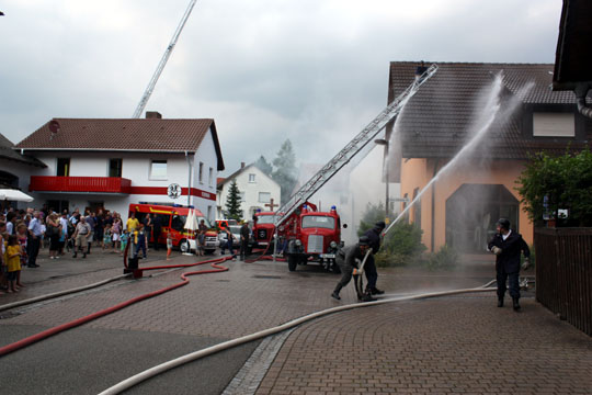 der Feuerwehr bildete ein echtes Feuer. Wie die „Großen“ rückten sie
