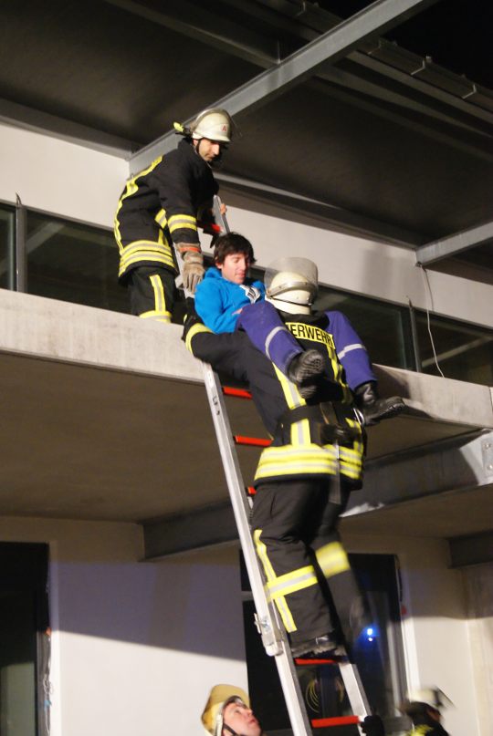 Personenrettung realisierten die Einsatzkräfte über eine tragbare