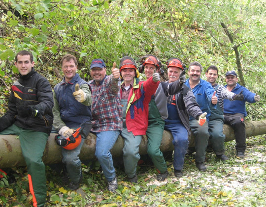 Sicherheitsvorkehrungen Baumfällübungen durchgeführt. Praxisnahe