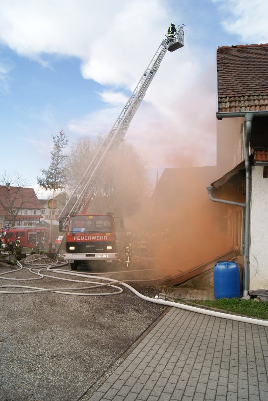 das Feuer auf das angebaute Ökonomiegebäude aus. Um ein