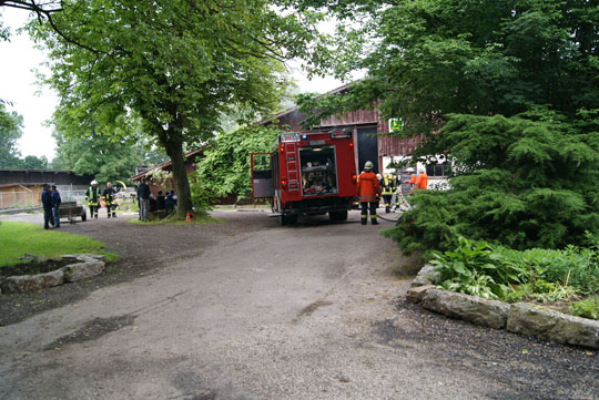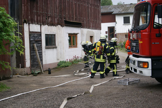 Geräteschuppen und Maschinen eine hohe Brandlast, die Wasserversorgung
