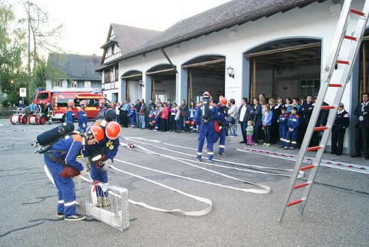 Schauübung am Gerätehaus. Hierbei löschten sie einen