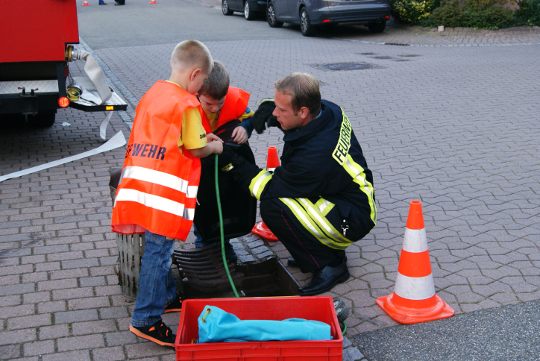 Inhalt einer Stationen. Hier entdeckten die Kinder, wie das Löschwasser