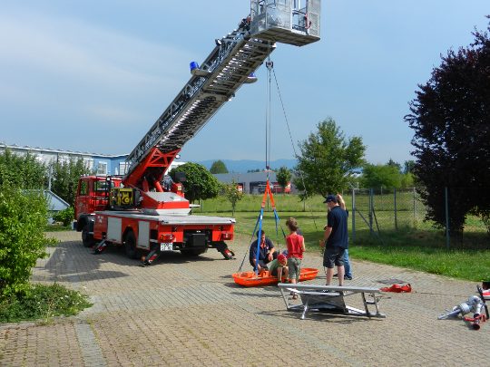 Fahrt in luftige Höhen testeten die Kinder die Rettung aus einem