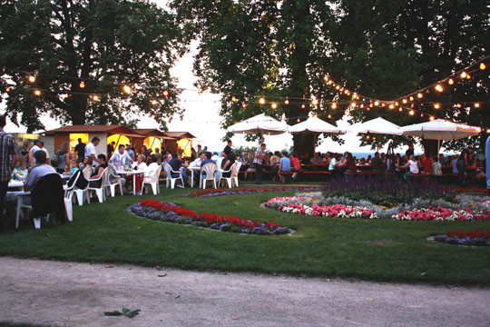 großen Bäume wurden Cocktails angeboten. Partystimmung kam