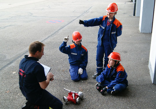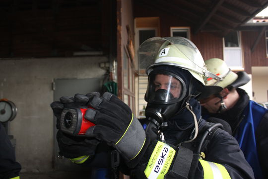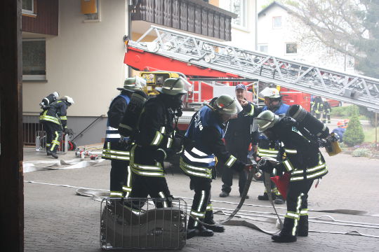 Im Übungsteil Brandbekämpfung soll im ersten Obergeschoss ein Feuer