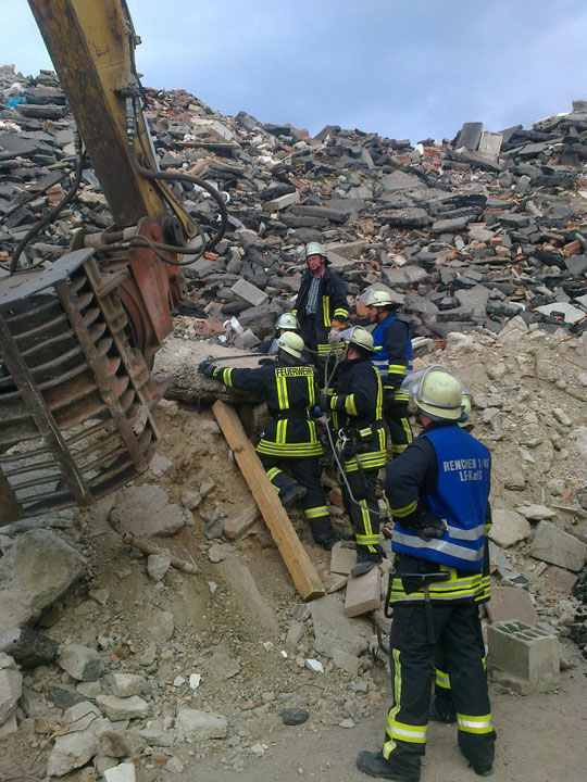 Zum einen galt es zwei unter grobem Bauschutt verschüttete Personen zu