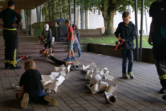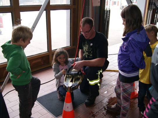 Feuerwehrarmaturen und Ratespiele zur Ausrüstung sorgten für weitere