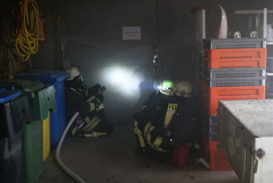 brennendes Teilelager in einem Kellergeschoss brannte als Übungsannahme