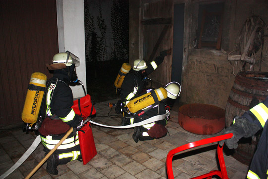 mit einem Löschangriff. Unterstützend nahmen weitere Helfer eine