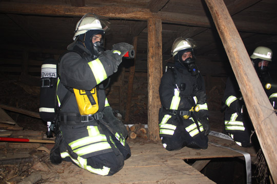Obergeschoss ausbreitet, montierten die Einsatzkräfte in der nun